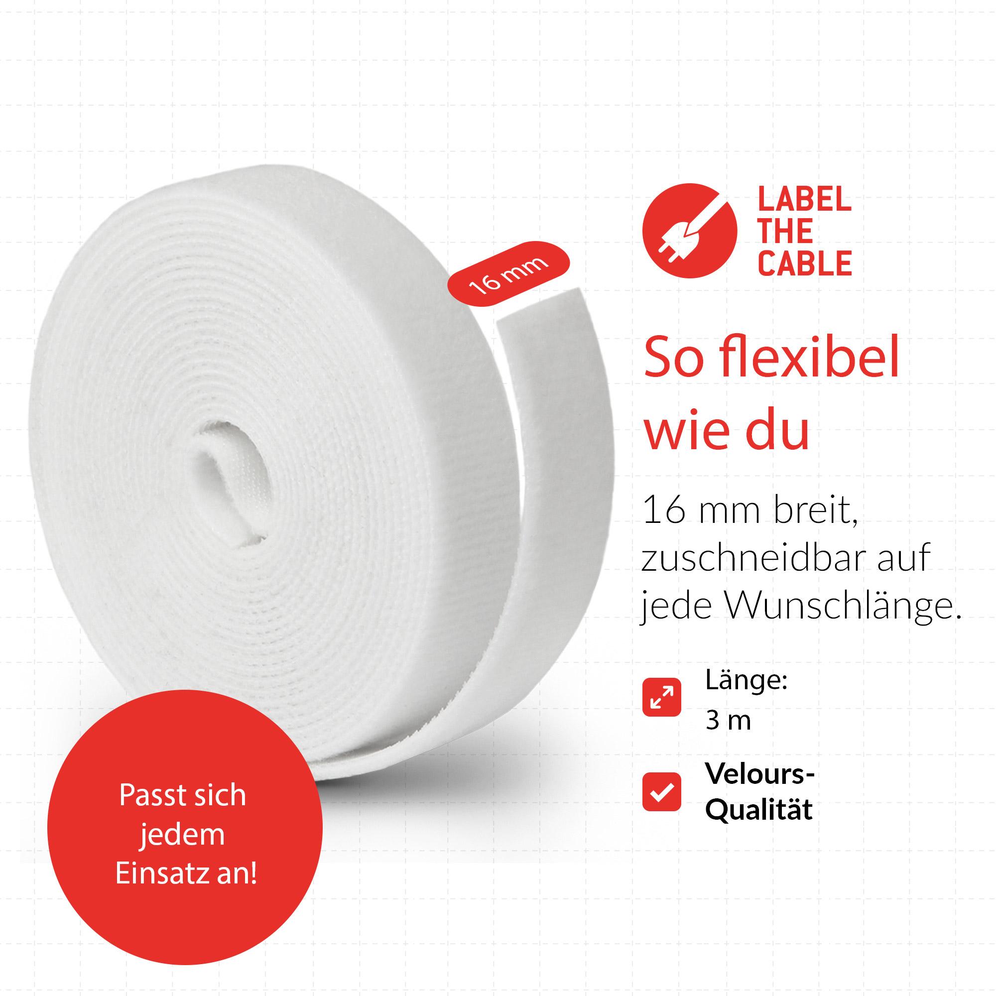 Label-the-cable LTC 1220 organizer per cavi Cable flex tube Scrivania/Parete Bianco 1 pezzo[i] (LTC ROLL STRAP - ber?ringsfastg